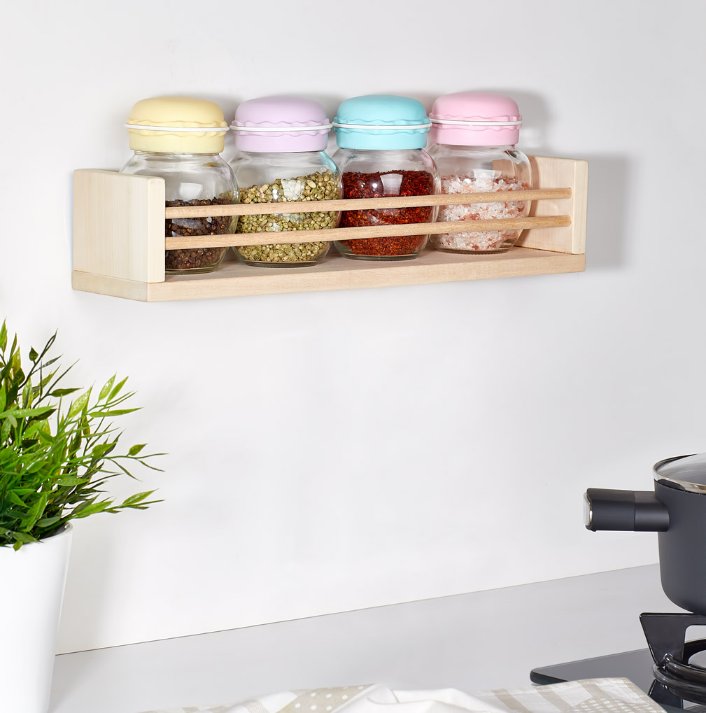 Ahşap Raflı Makaron Baharatlık Seti 5x