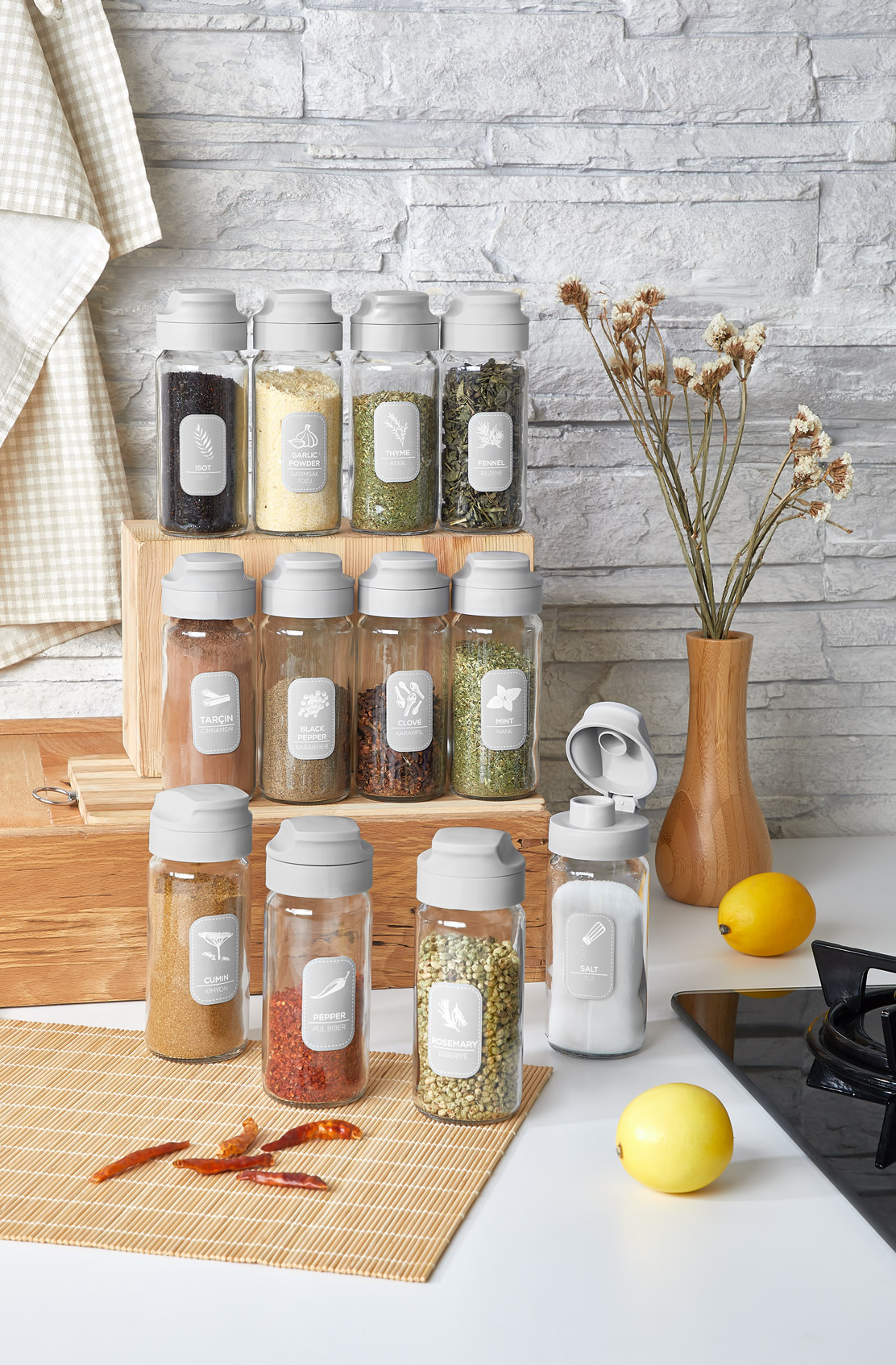 Panama Ahşap Standlı Makaron Baharatlık Seti 4x